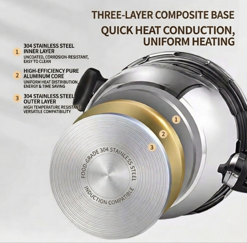 Cook smarter. Cook faster. Cook better. This 80KPa High-Pressure Cooker is built for serious home cooking. Made from durable 304 food-grade stainless steel, it delivers fast, even cooking while locking in flavor and nutrients. Perfect for families, meal prep, and traditional slow-cooked dishes — done in a fraction of the time.