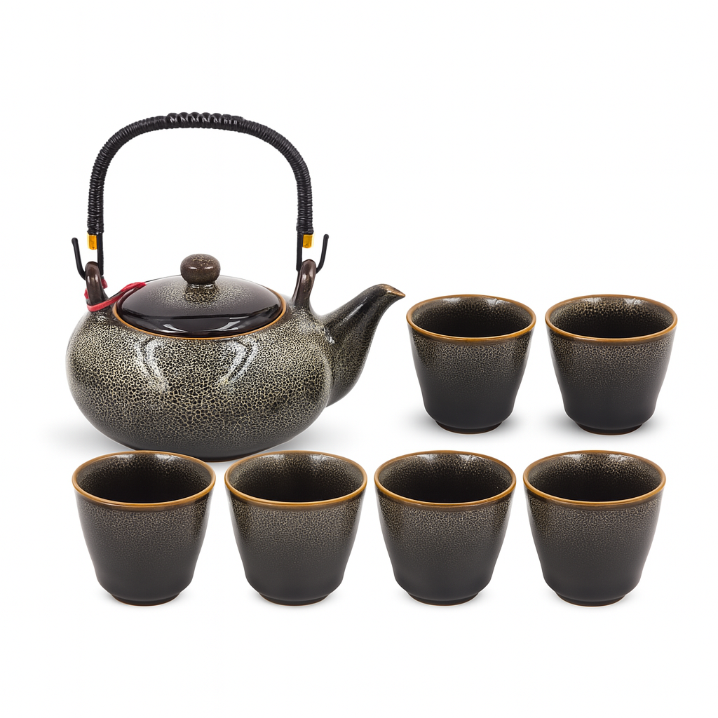 Ceramic Gloss Echoes of Fire with 6 Tea Cups - Teapot Set - Black Grey