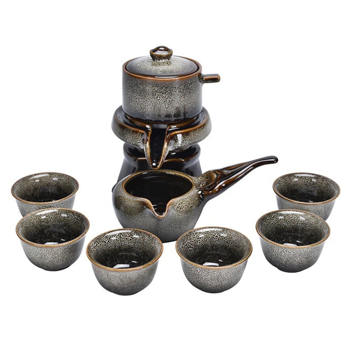 Ceramic Gloss Echoes of Fire with 6 Cups - Ceremony Kung Fu Tea Set - Black Grey